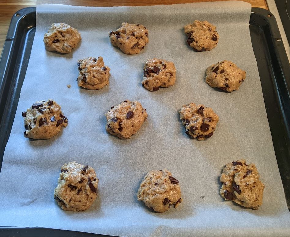 Den Ofen auf 180°C vorheizen. Danach die trockenen Zutaten in einer Schüssel miteinander vermischen und die gehackte Schokolade dazugeben. Im Anschluss die Mandelmilch und das Byodo Back-Öl Exquisit zugeben und mit der Hand zügig zu einer einheitlichen, klebrigen Masse verkneten. Daraus ungefähr 12 gleichgroße Kugeln formen und diese, mit etwas Abstand zueinander, auf ein mit Backpapier ausgelegtes Backblech legen. Sollte der Teig zu klebrig werden, am besten einfach kurz die Hände kalt abwaschen. Die Cookies für zehn Minuten in den Ofen geben und anschließend auf einem Kuchengitter abkühlen lassen.